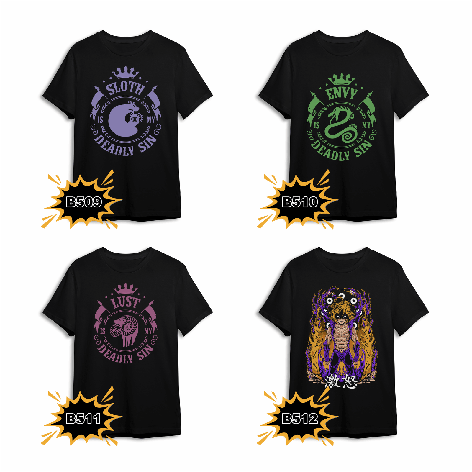 Vive el pecado y la redención con nuestras camisetas de Nanatsu no Taizai, una colección inspirada en los caballeros que desafiaron a los dioses y al destino.