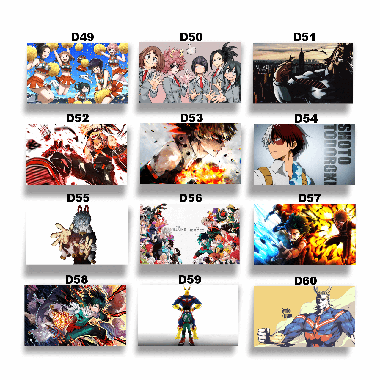 Nuestra colección incluye diseños exclusivos con Deku, Bakugo, Todoroki, All Might y los héroes más poderosos, impresos en MDF premium con máxima calidad para que cada detalle cobre vida en tu pared.