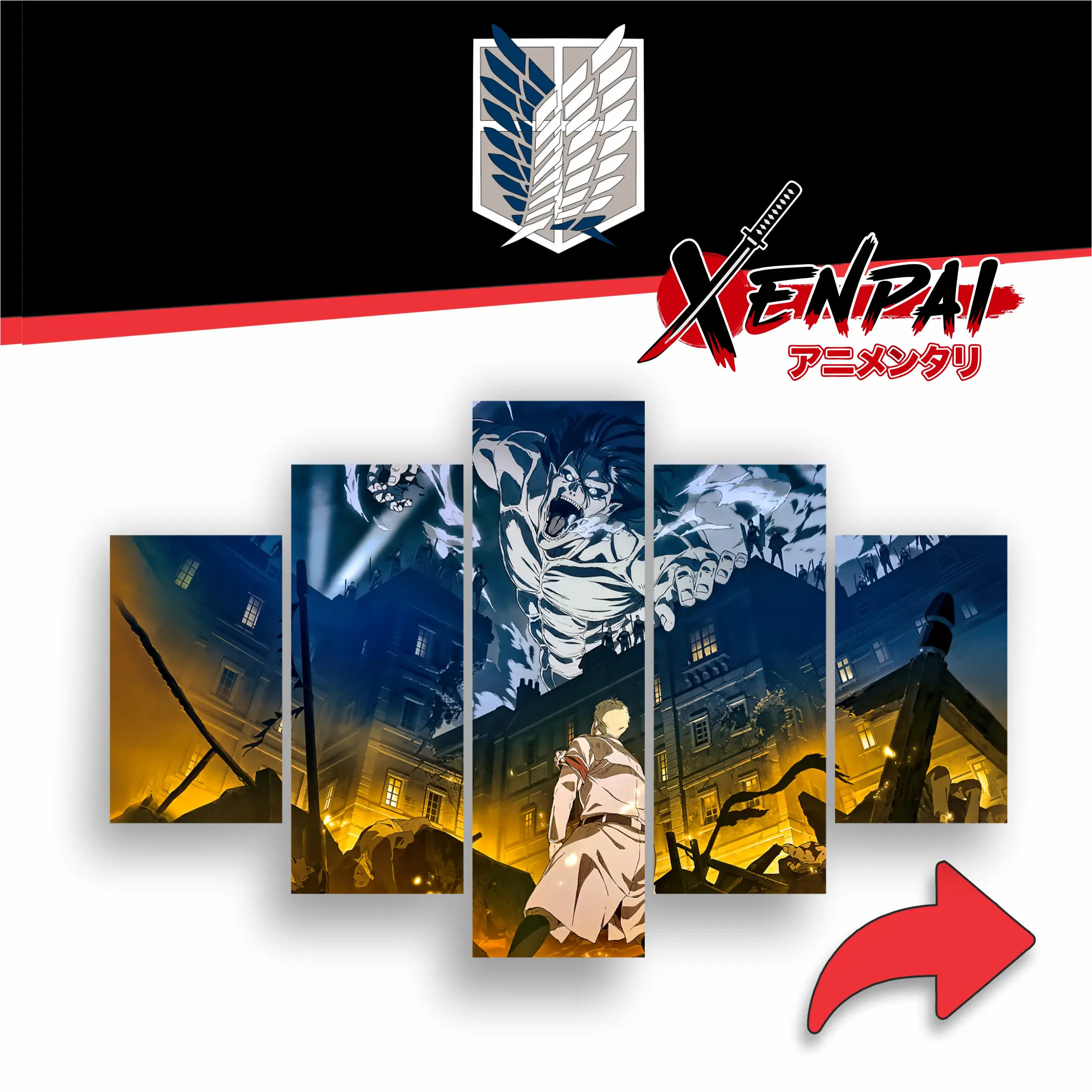 Convierte tu pared en una escena épica con los cuadros de 5 piezas de Attack on Titan de Xenpai. ⚔️🔥