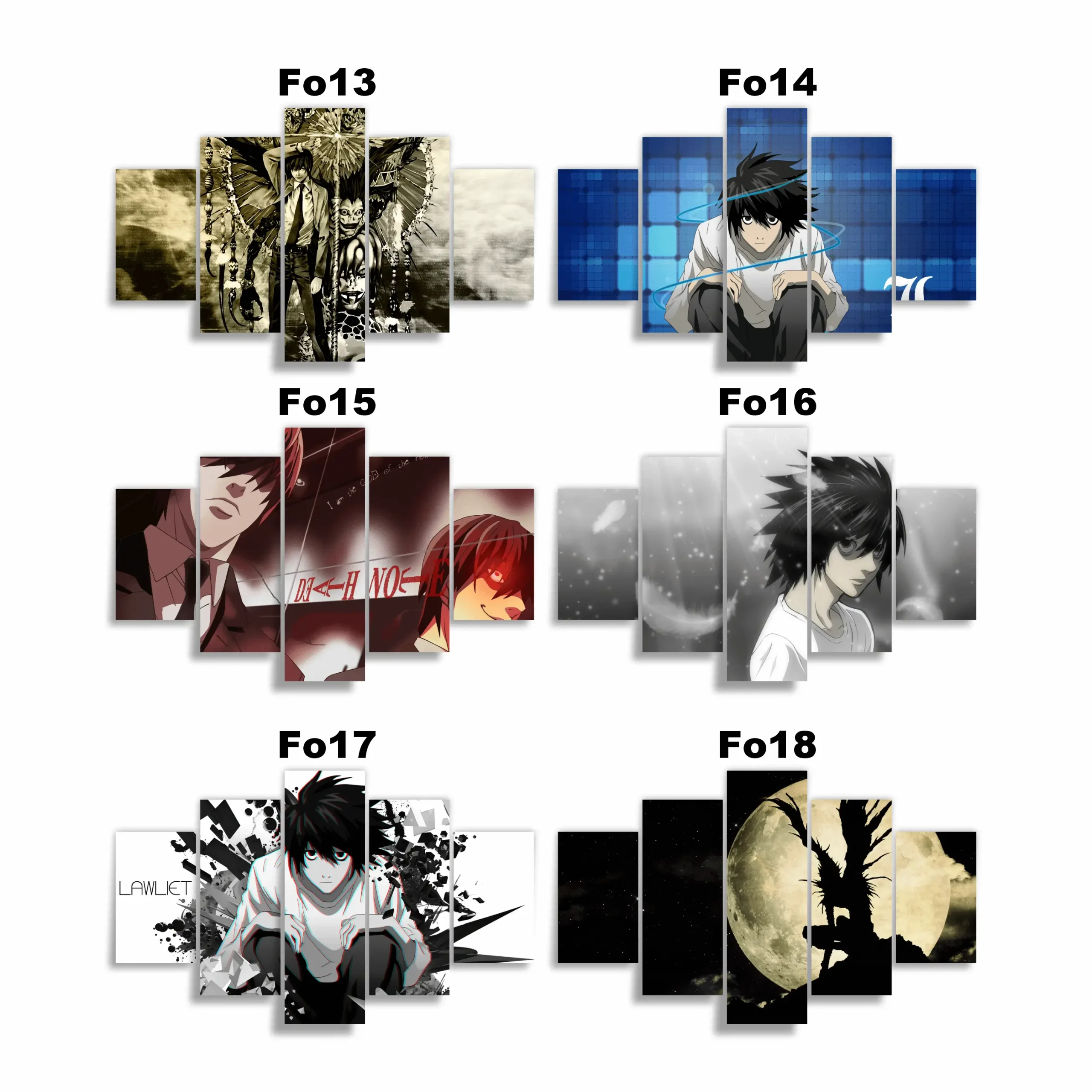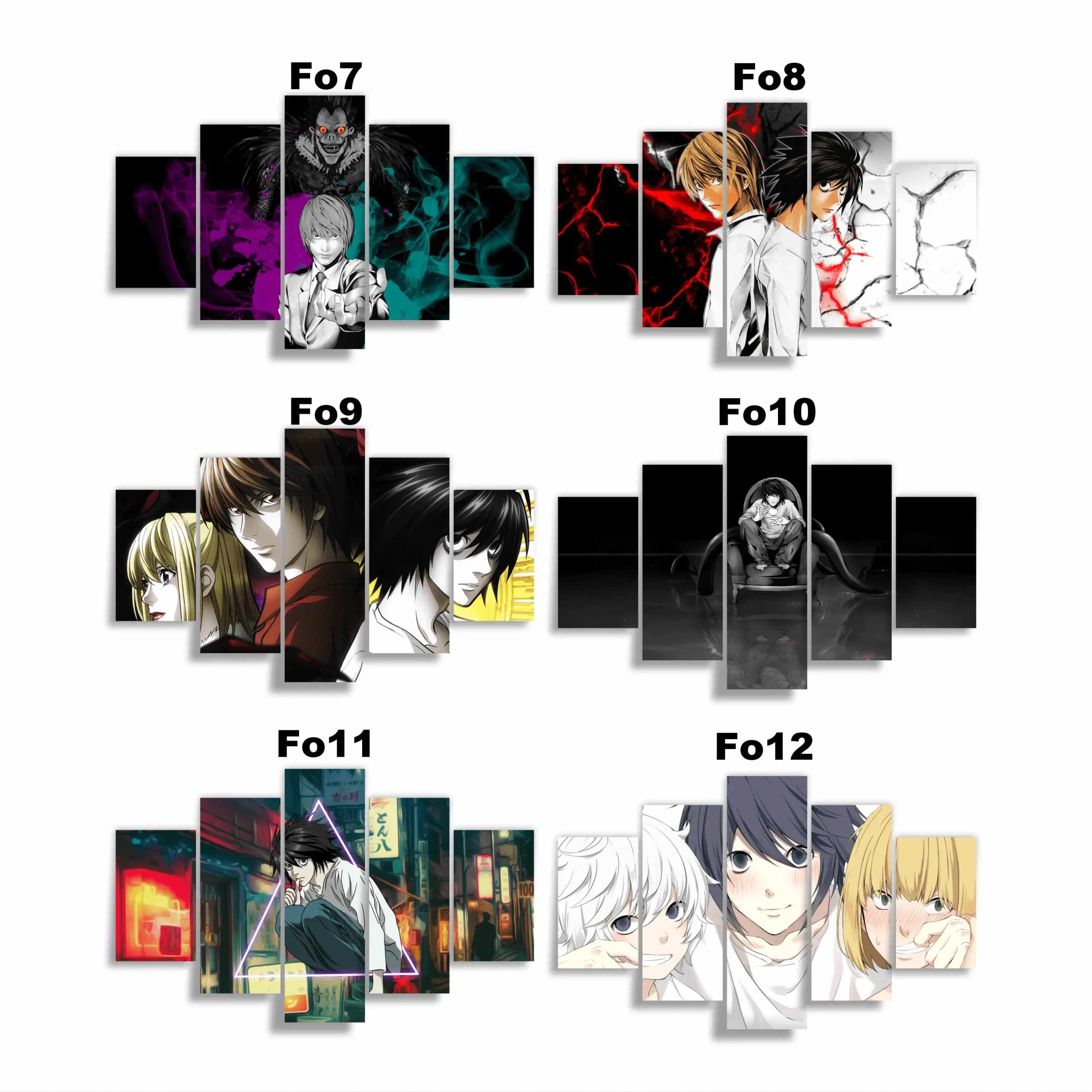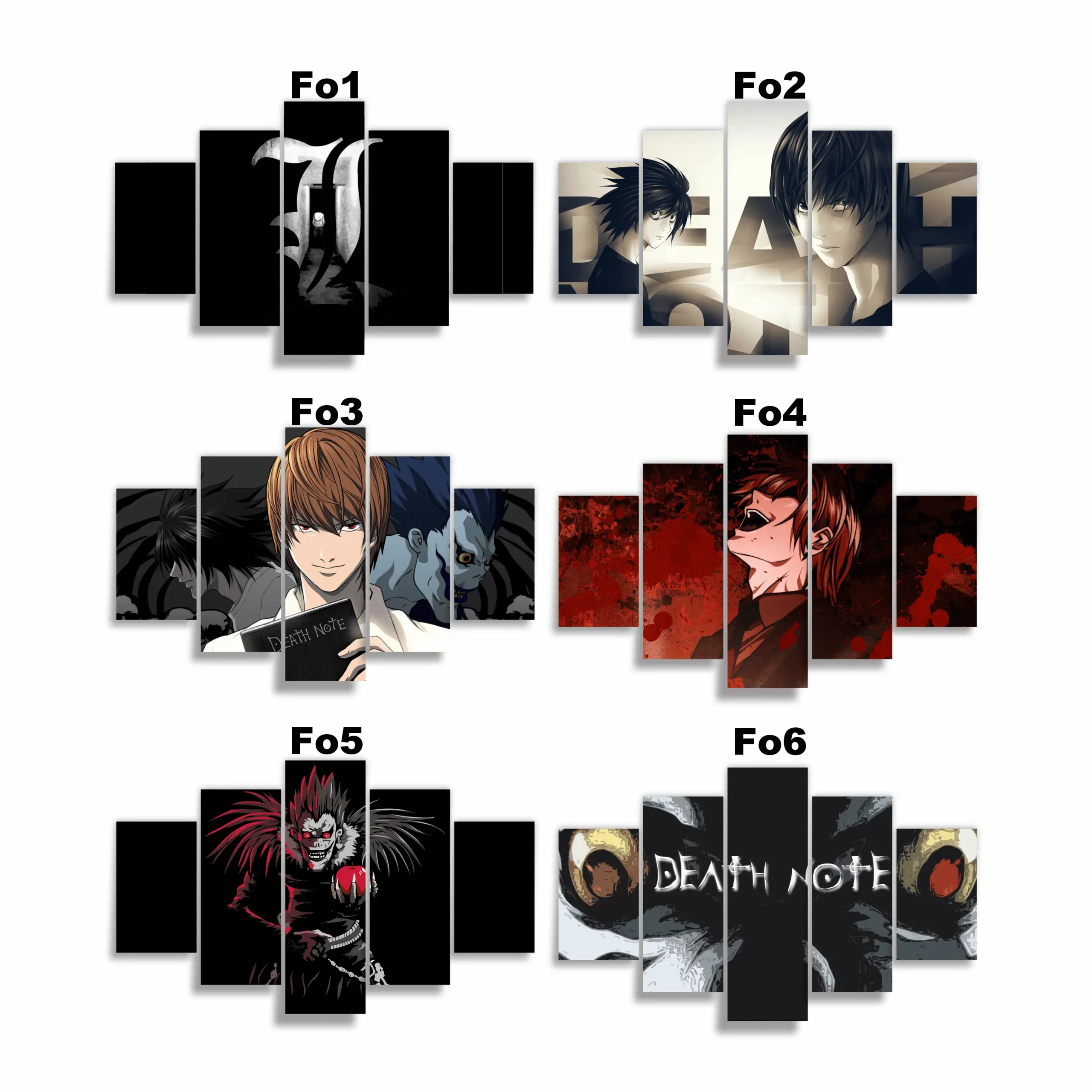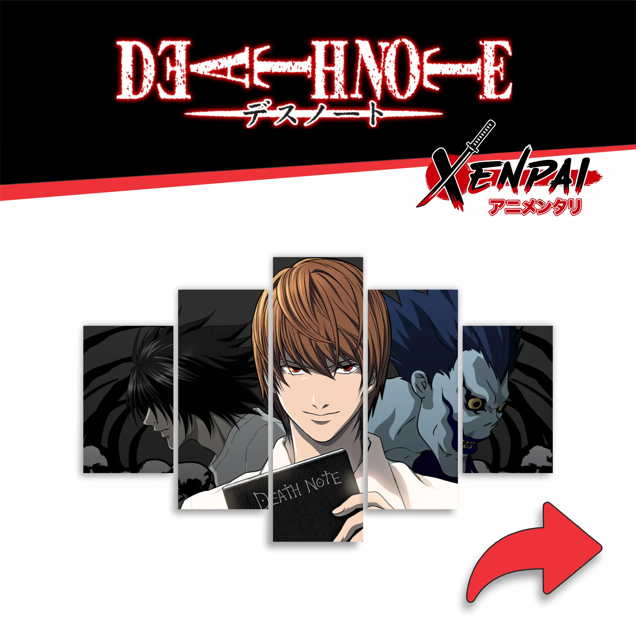 Lleva el poder de la justicia absoluta a tus paredes con los cuadros de 5 piezas de Death Note de Xenpai. 🕯️💀