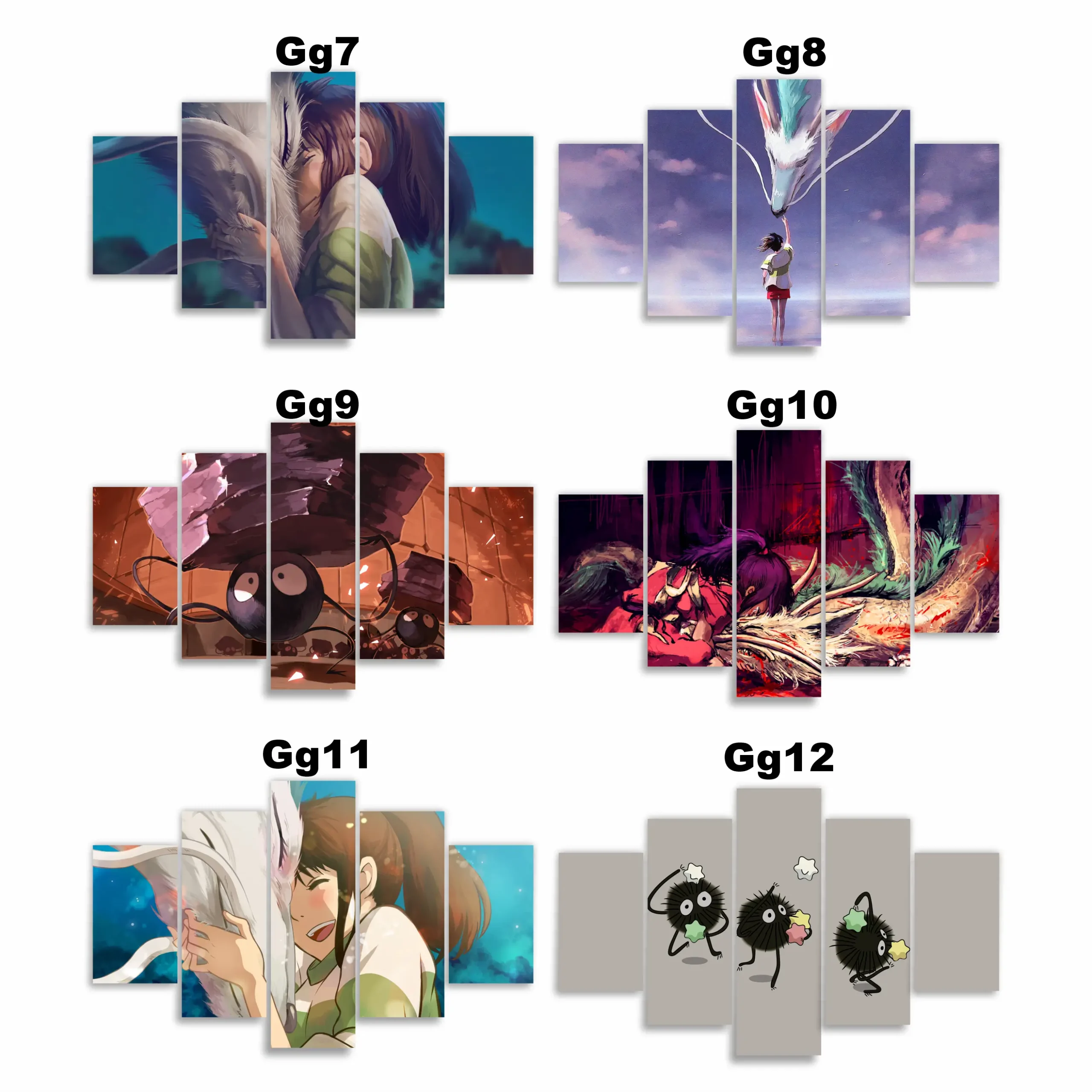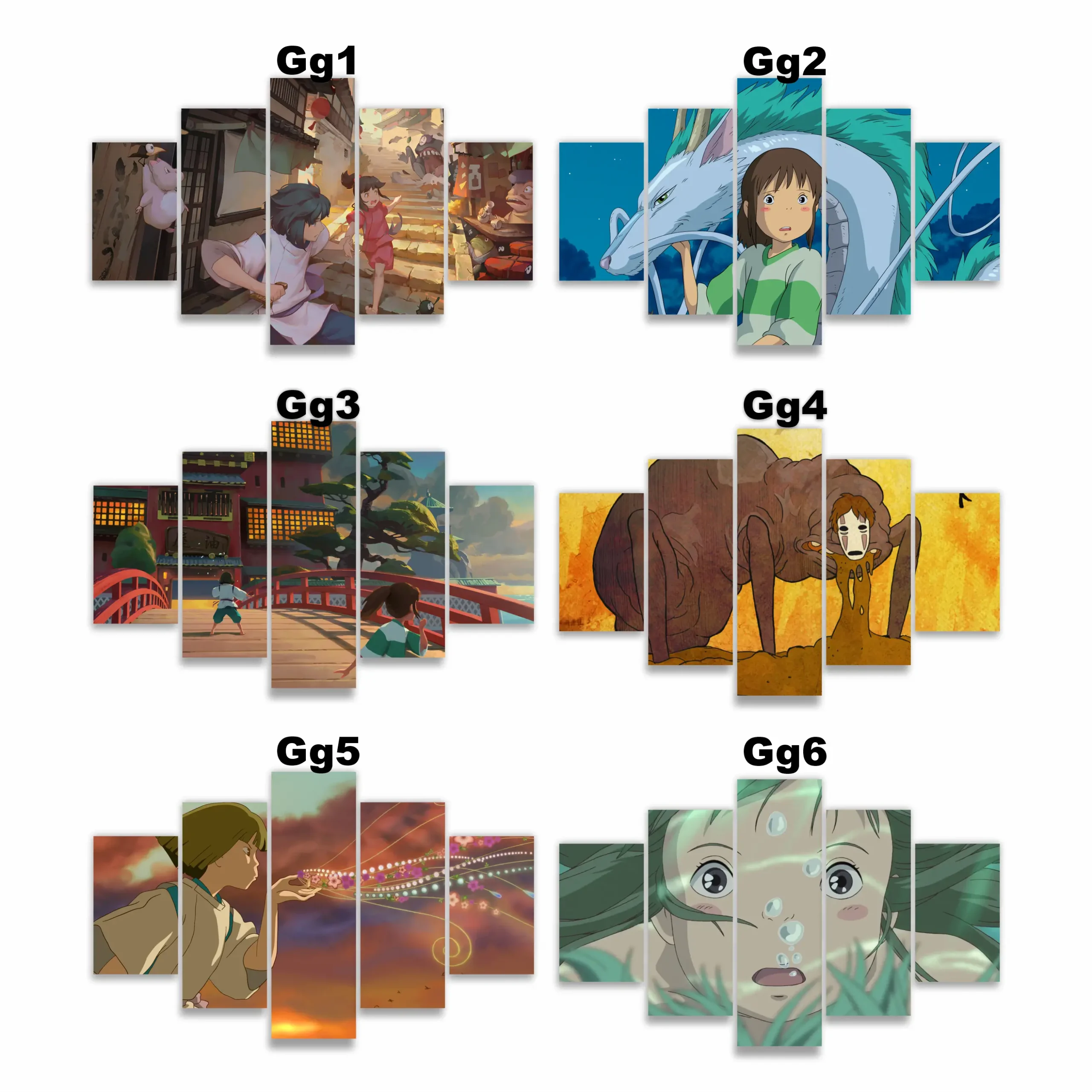 Cada panel captura la esencia de Chihiro, Haku y los paisajes oníricos del baño espiritual, convirtiendo tus muros en una puerta hacia lo imposible.