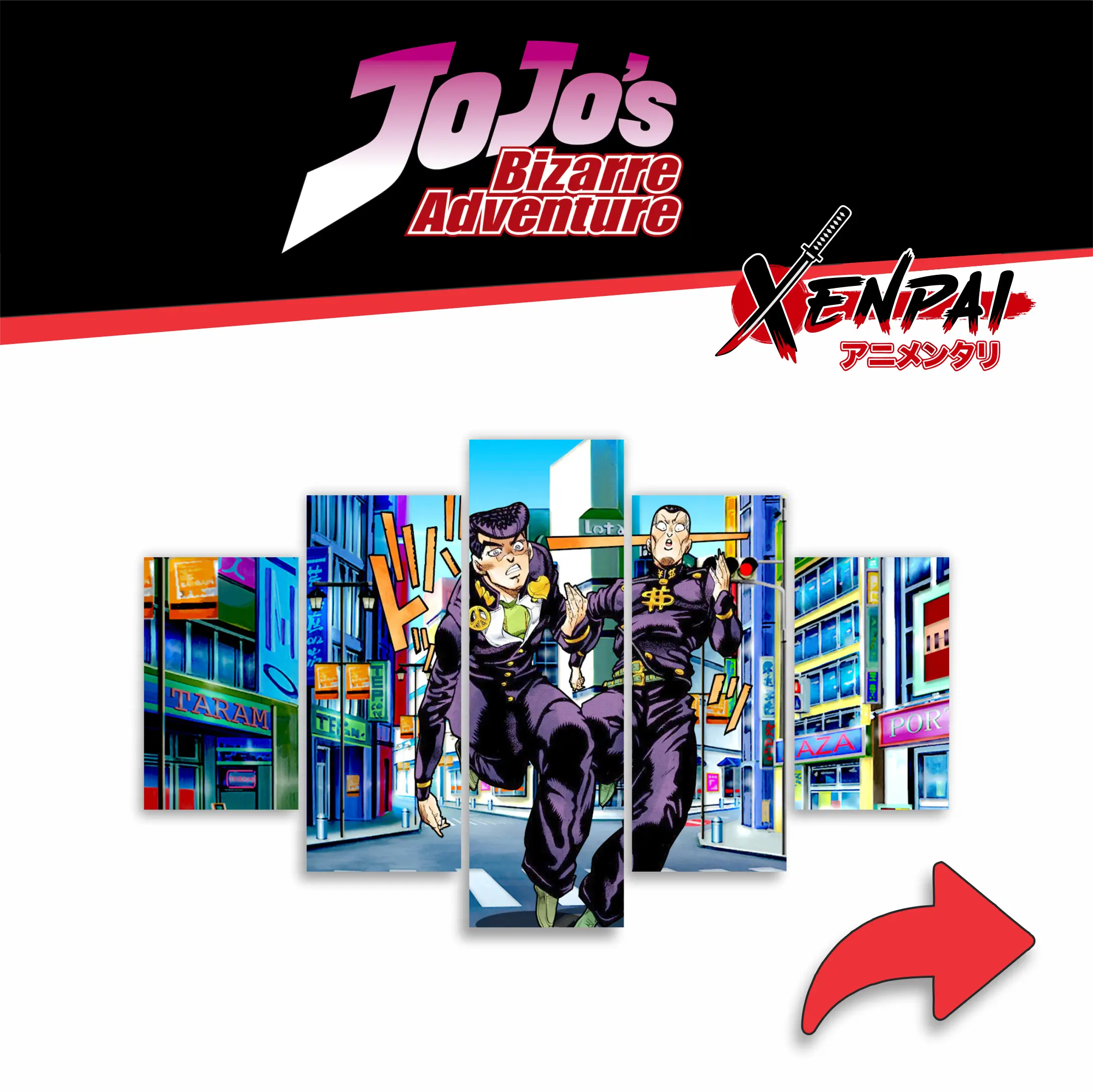 Los cuadros de 5 piezas de JoJo’s Bizarre Adventure de Xenpai combinan arte, locura y elegancia en una composición visual que grita ORA ORA ORA! 🎨⚡